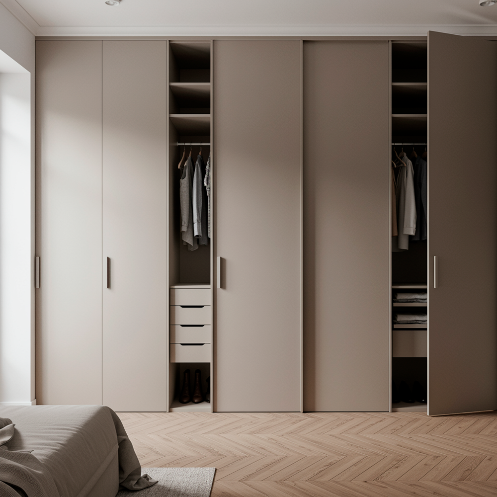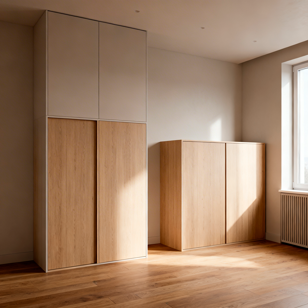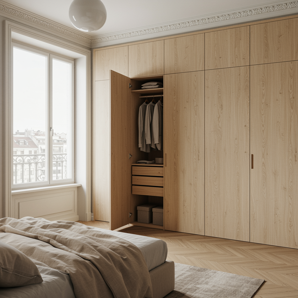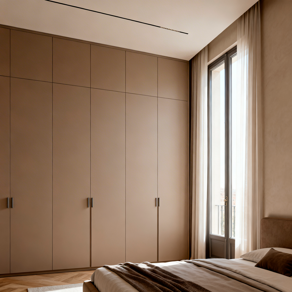 La presencia del armario en la habitación: proporción, ritmo, cortes, color y material. Para integrar sin dominar.