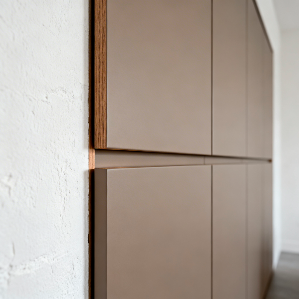 Lacados, chapas naturales o paneles técnicos seleccionados según el espacio y la luz.