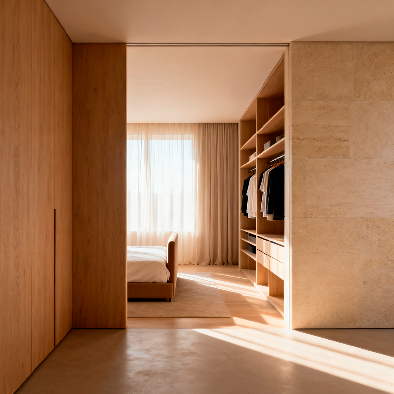 La experiencia cambia cuando las proporciones son correctas y el recorrido fluye. Entrar, abrir, acceder y vestirse debería sentirse intuitivo, cómodo y silencioso.